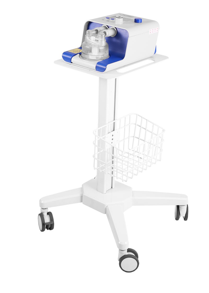 通過(guò)內(nèi)置的渦輪風(fēng)機(jī),將空氣和氧氣充分混合,經(jīng)過(guò)加溫加濕后按一定的氧濃度配比,輸送到患者肺部深處,從而改善氧合、維持氣道生理環(huán)境。