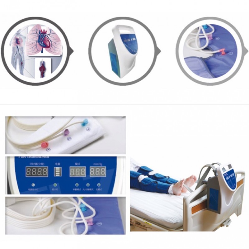 空氣波壓力治療儀的工作原理:通過模擬人體行走狀態(tài),給雙下肢施加適度壓力,促進下肢靜脈血液回流,以減少靜脈血栓形成的幾率;純物理方法,不增加出血風險。
